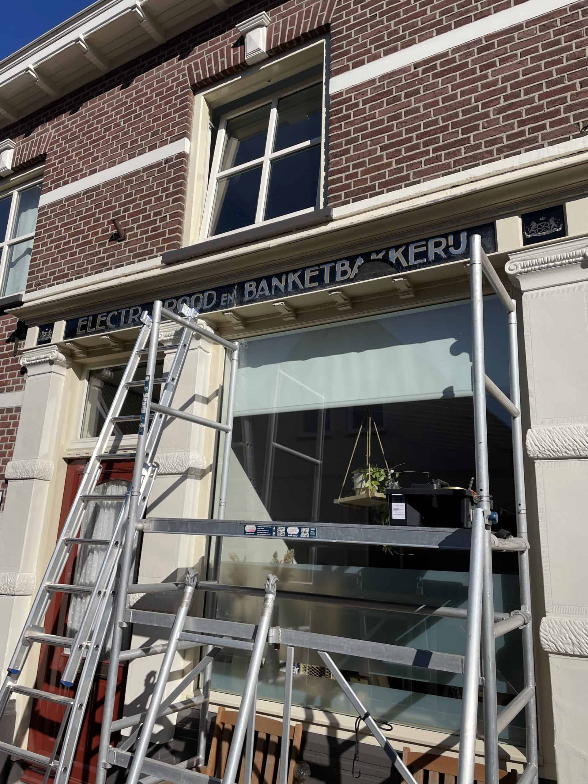 Om zowel het originele uiterlijk te behouden als de kosten beheersbaar te houden, hebben wij gekozen voor een slimme aanpak. Het reclamebord is op moderne wijze nauwkeurig nagemaakt, met respect voor het oorspronkelijke ontwerp, karakter en uitstraling. Zo blijft de historische waarde zichtbaar, terwijl het bord weer jarenlang mee kan.